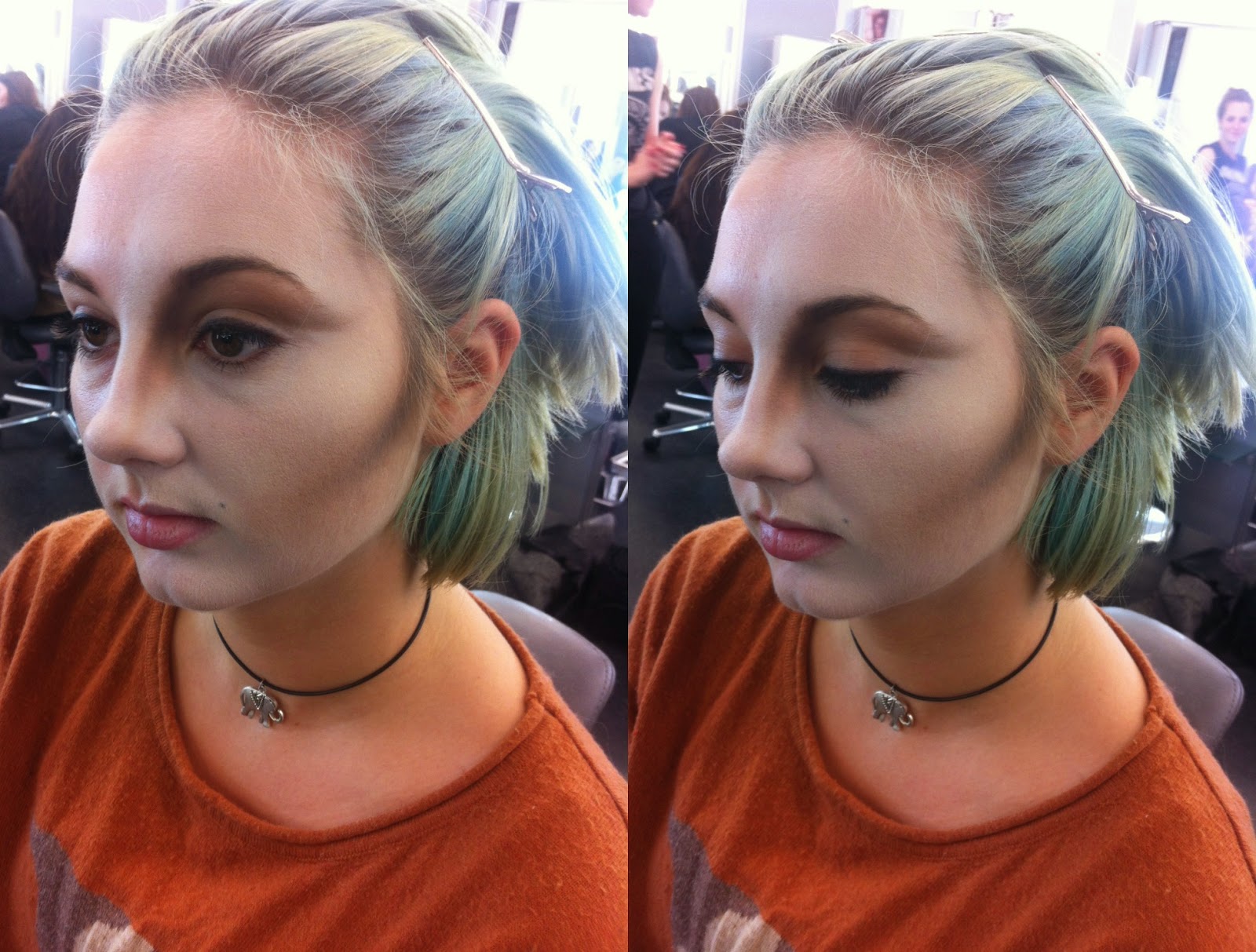 I began by contouring the cheek, following just under Amelia's natural cheekbone. I started with my lightest colour, Kryolan Glamour Glow in Glamour Tan, which I used to mark out the cheekbone. I also used the same product to mark out my contour on the nose and eye socket. I then worked into this with a slightly darker shade; Illamasqua Sculpting Powder in Heliopolis, blending out the Kryolan Glamour Glow as I worked. I used Heliopolis to work into the areas that I had already marked out with Glamour Tan, as I intended to work from the lightest colour to the darkest.